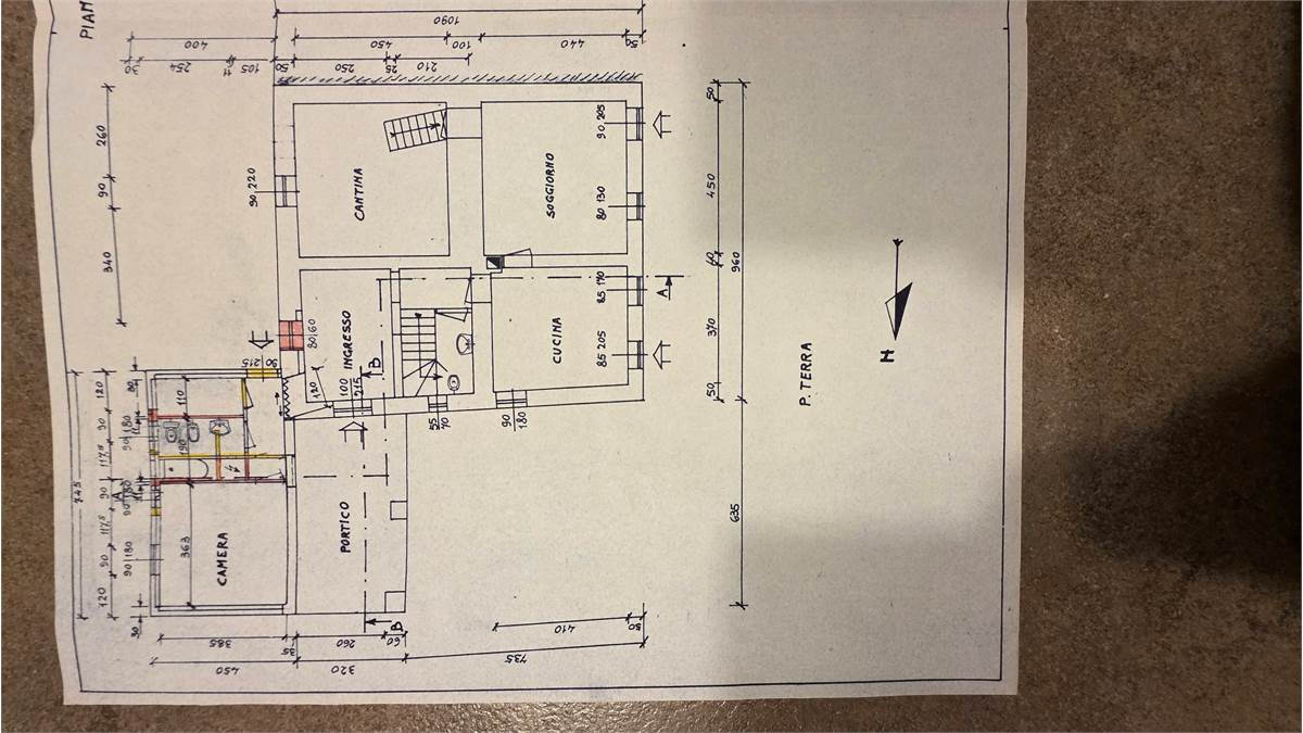 - PIANO TERRA: ampio ingresso, salone con camino, cucina abitabile, bagnetto di servizio, disimpegno, camera, bagno, ripostiglio/lavanderia, portico, cortile e giardino con ripostigli e barbecue in muratura;